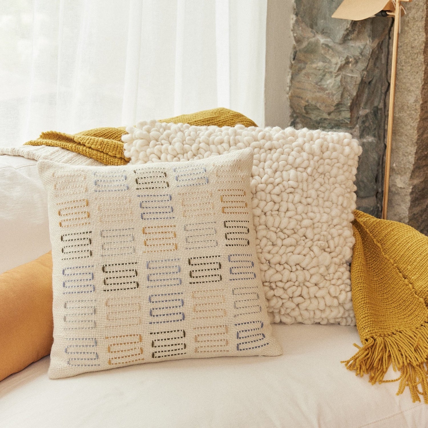 LILA Handwoven Merino Wool Embroidered Cushion Cover