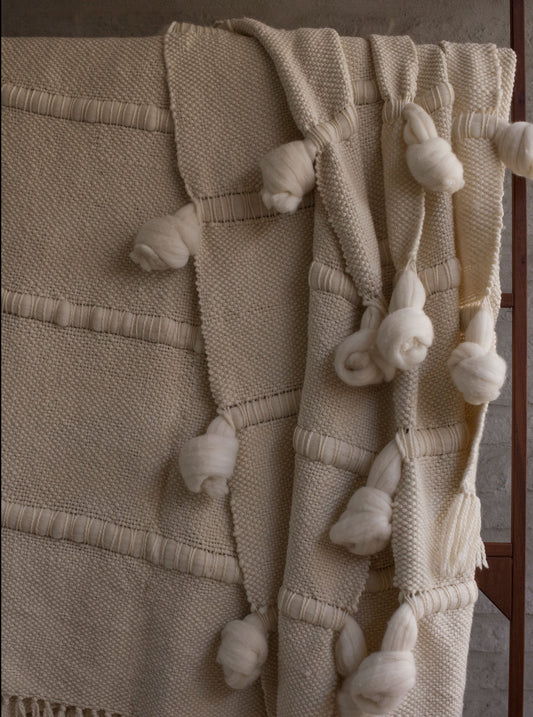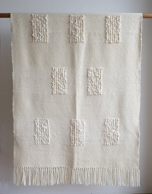 Handknit Throw in Ivory Chunky Merino Wool Trama 63x75