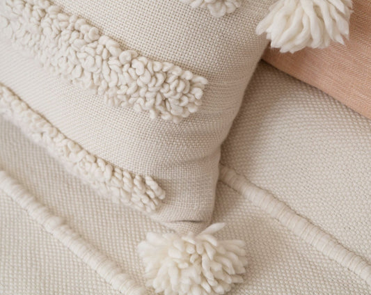 Chunky Cover Cushion with Pom Poms in Ecru Cielo 22x22