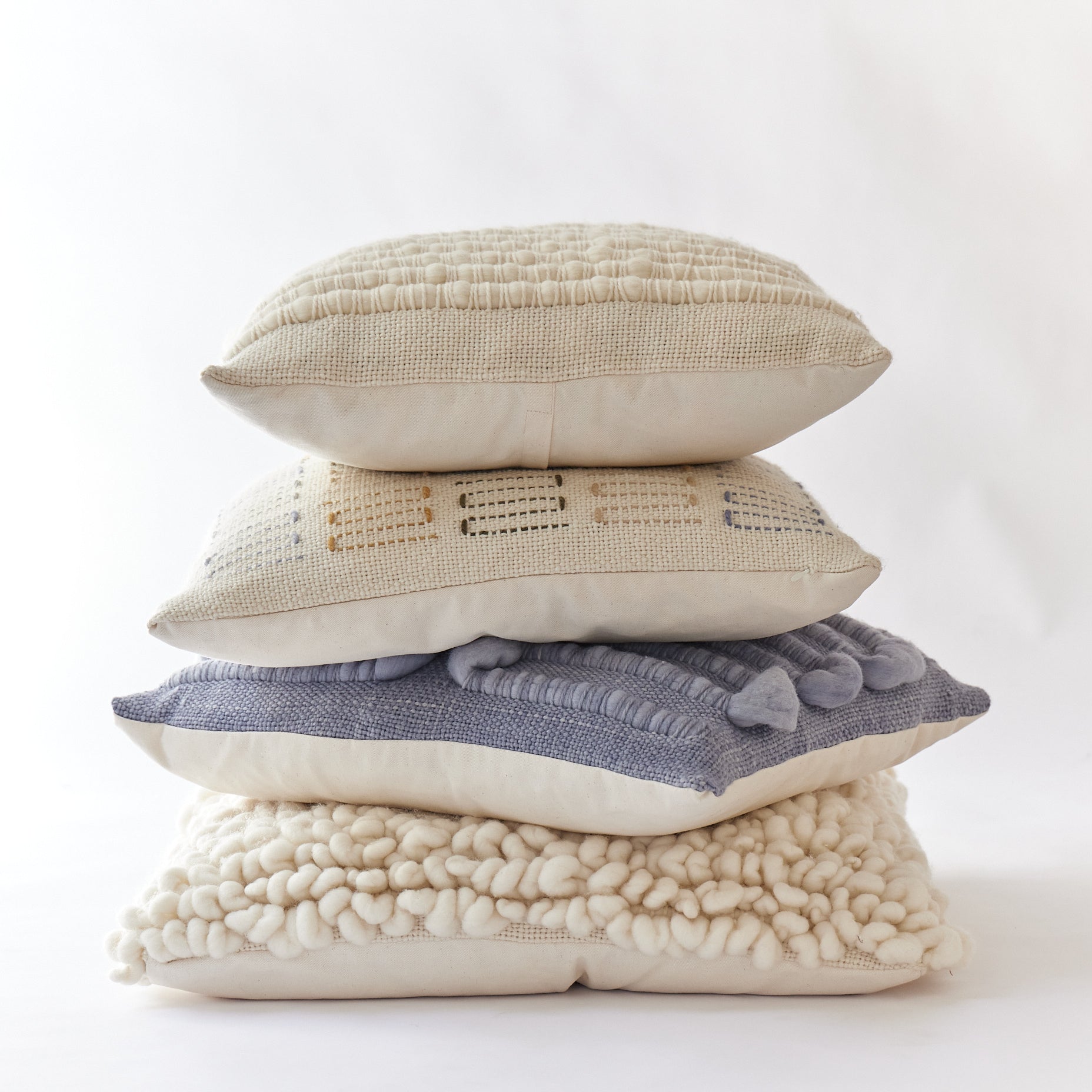 Handcrafted with love, this captivating cushion case features two lines of chunky felted wool, delicately woven into a geometric pattern. Made from 100% organic, undyed merino wool, the soft white cover exudes elegance and charm. With its invisible zipper closure, it offers a clean and seamless finish.