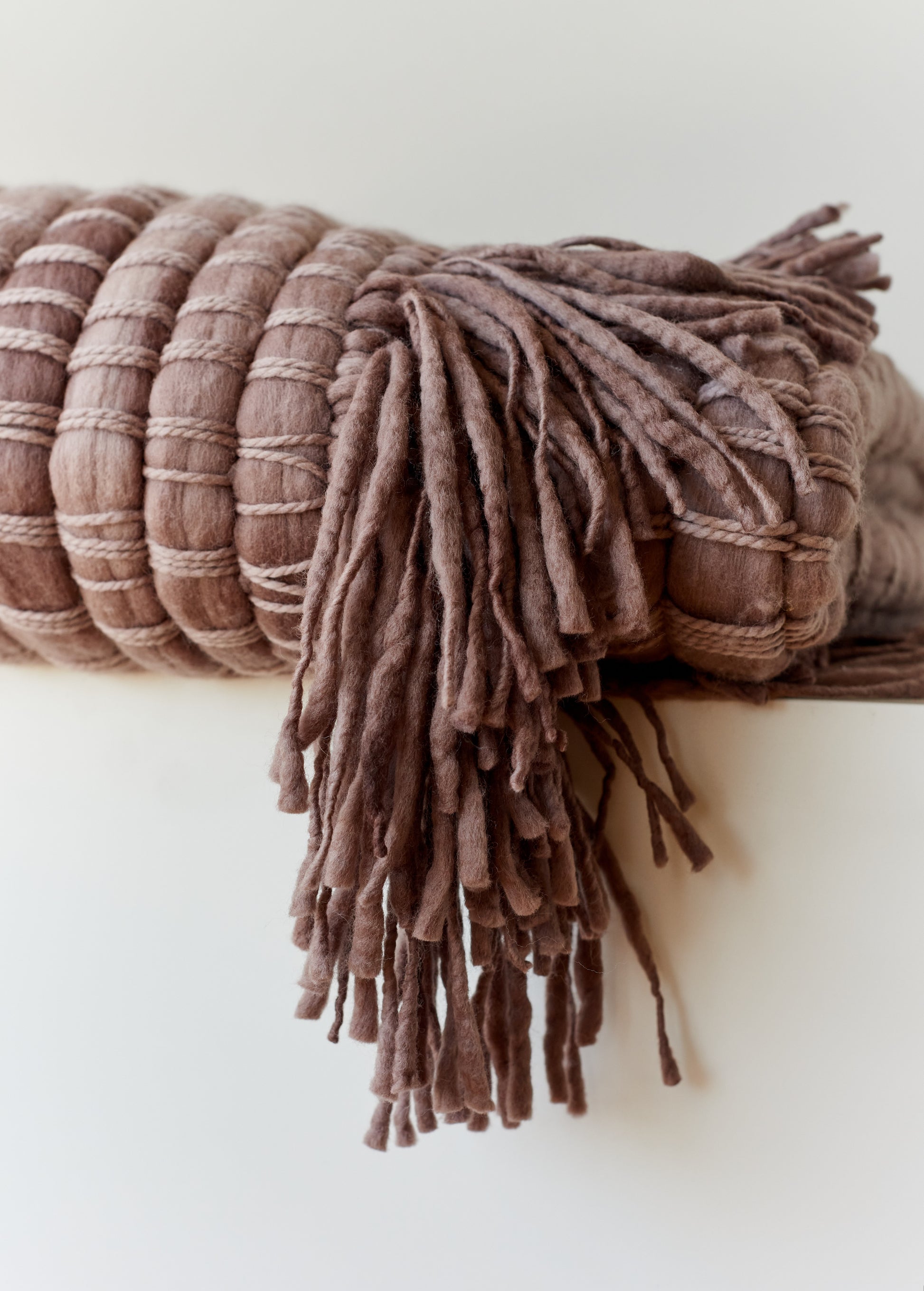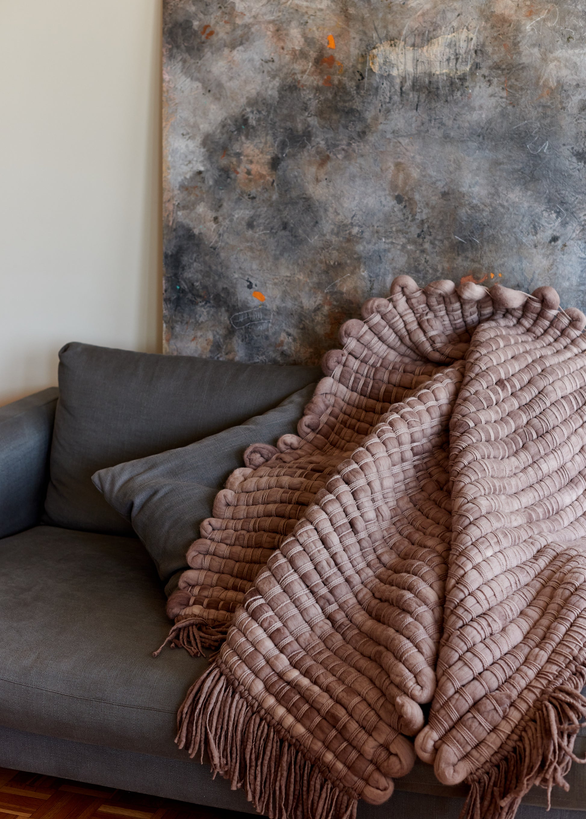A surface that gently ripples and weaves around itself defines this luxe bed spread, rich with organic textures and natural colors. Soft and comforting, OSMIO is a chunky piece, ideal for adding a weighted top layer over your bed for Winter nights in.