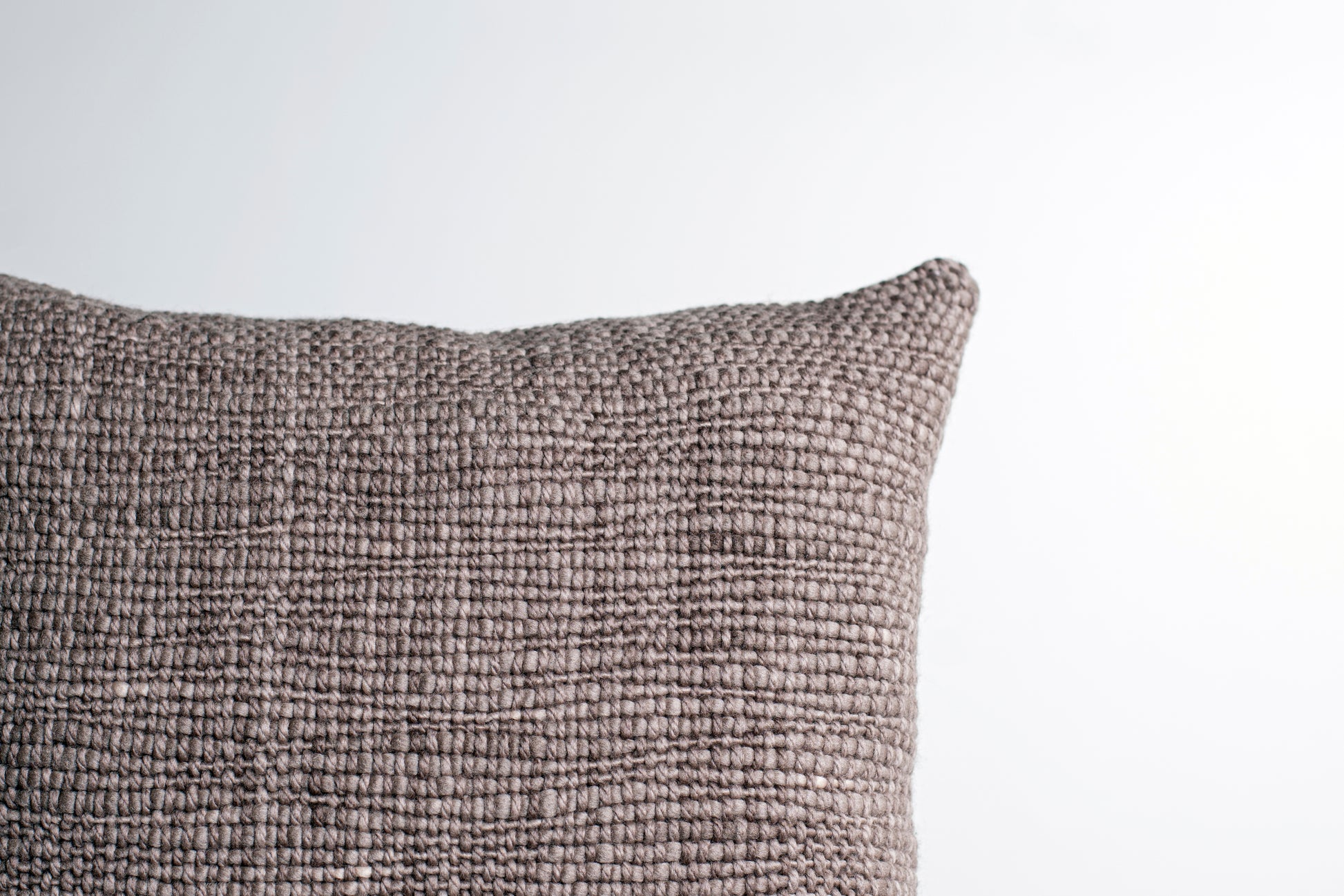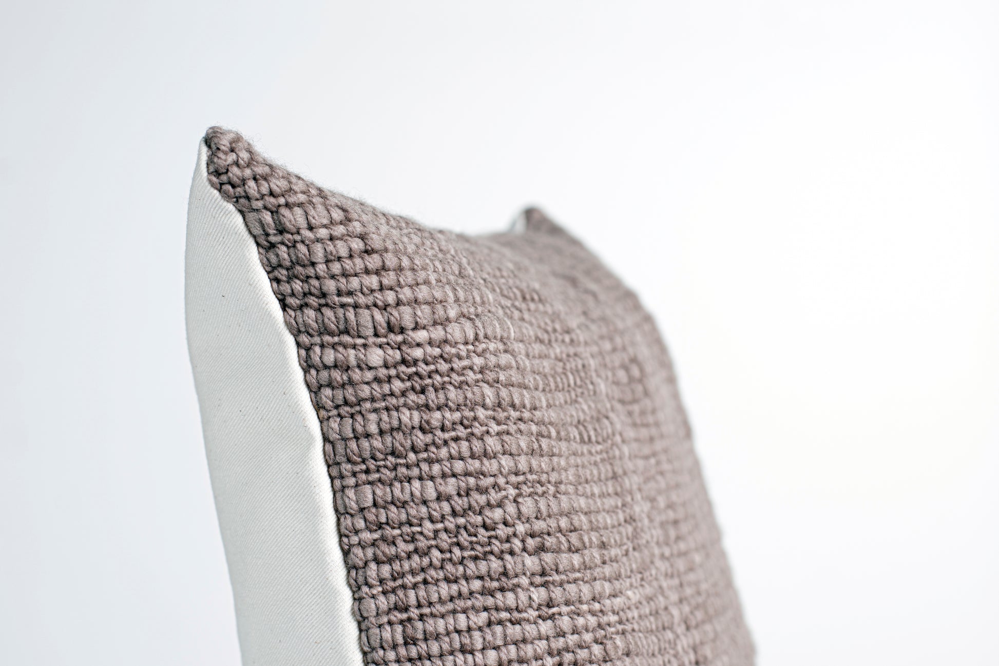 This luxury wool cushion features neutral hues, obtained using natural plant dyeing and OEKO-TEX®, a global certification that ensures no chemicals were used in the manufacturing process.