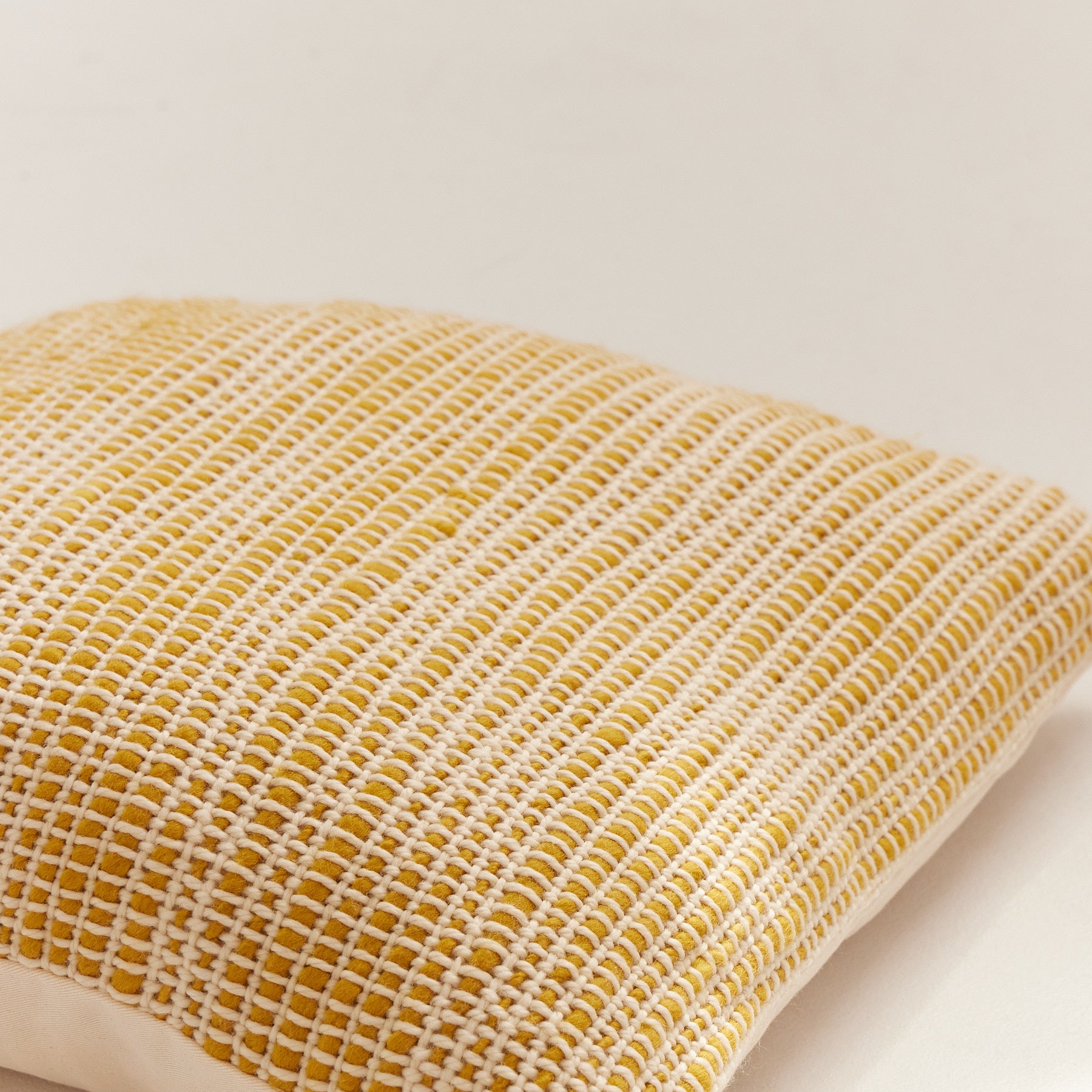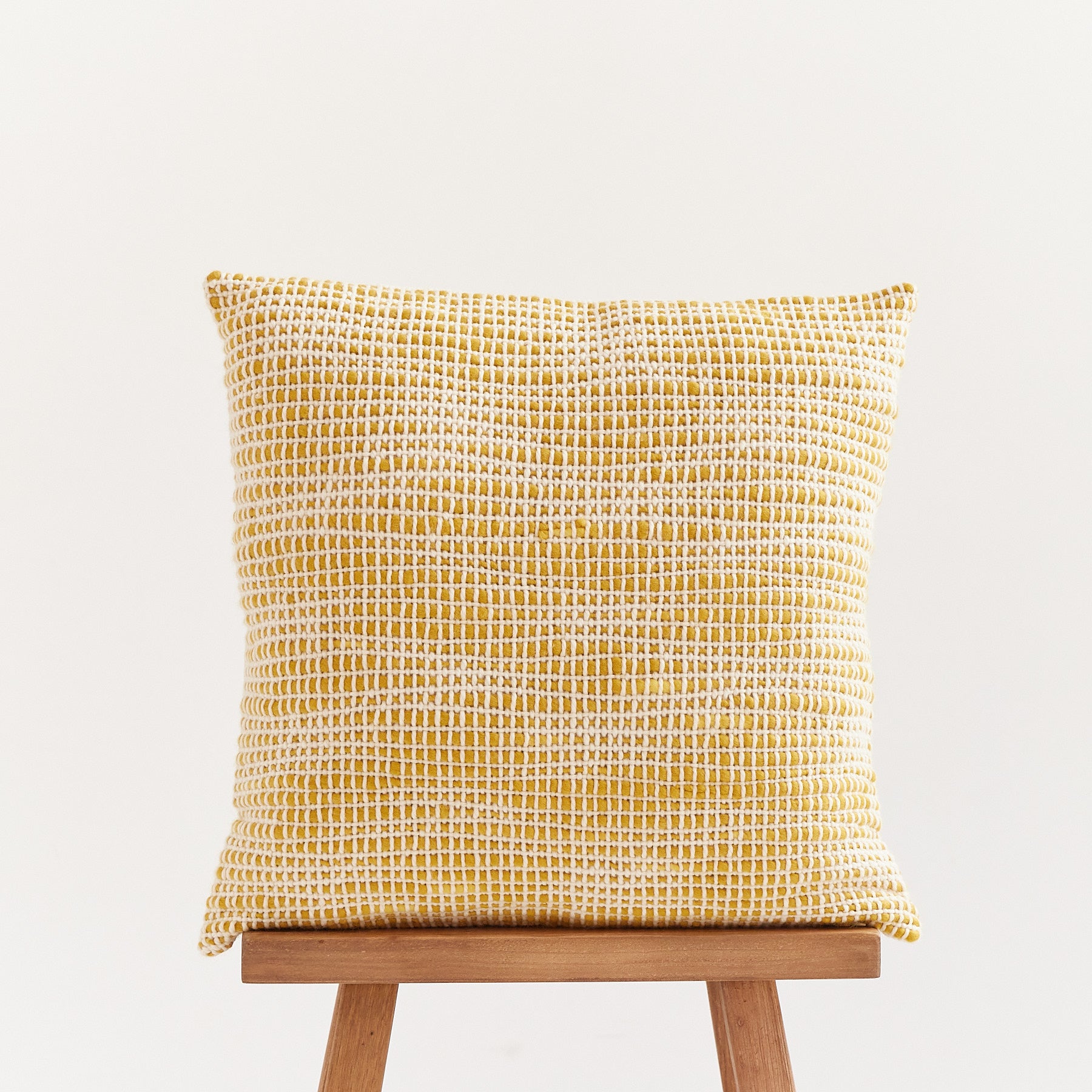 Meticulously woven from the finest Merino wool, this masterpiece is meticulously handcrafted by skilled artisans from Uruguay. Prepare to be captivated by the harmonious fusion of textured yarns in a refined palette of off-white and eco dyeing yellow. Immerse yourself in the allure of contemporary design as you adorn your humble abode with this remarkable wool cushion.